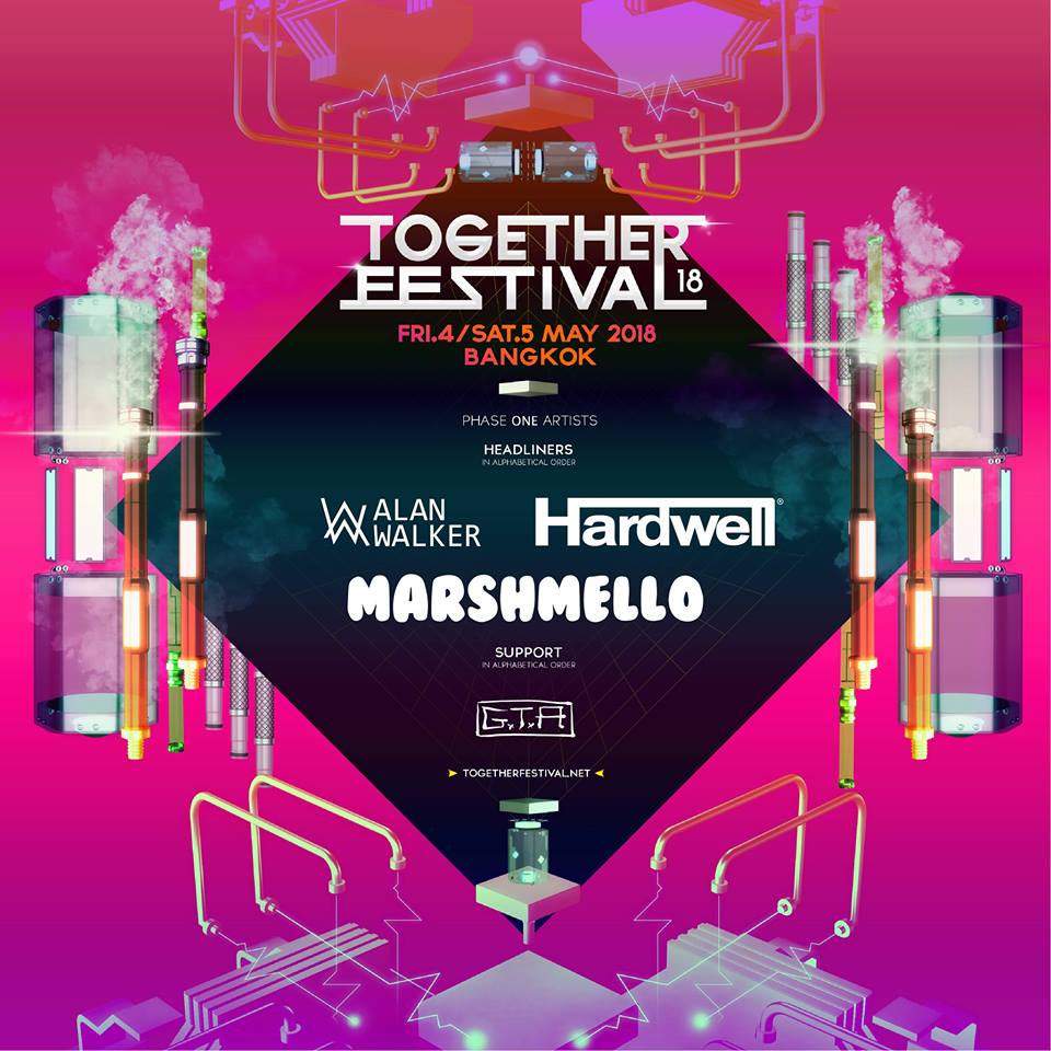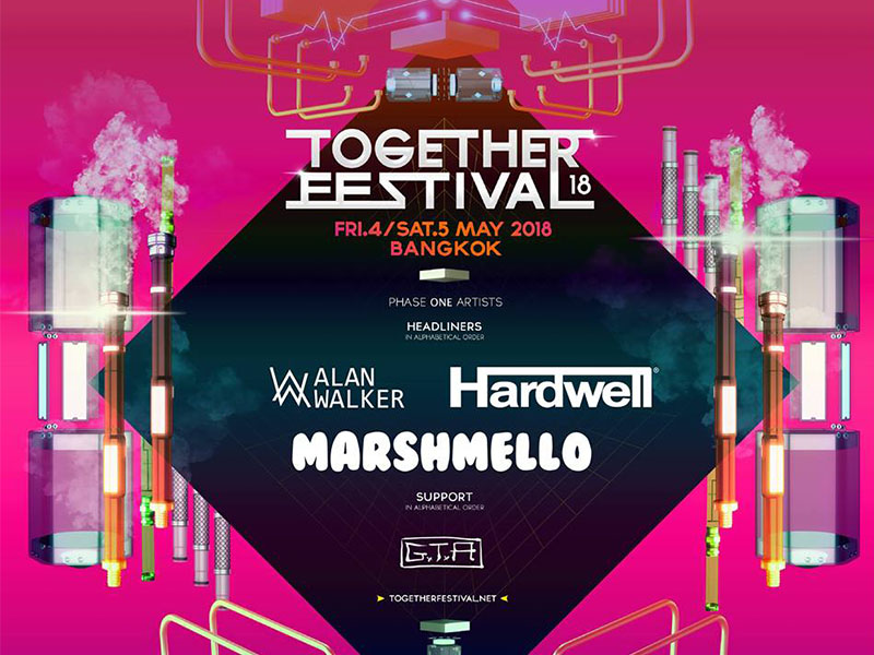 เพียงแค่เผย Line Up หลักล้านกับดีเจแถวหน้าระดับหัวกระทิของโลก บัตรเฟสแรกหลังเปิดตัว ก็ได้ Sold out ลงไปอย่างรวดเร็วเป็นที่เรียบร้อย เรียกเสียงฮือฮอาได้อย่างหนัก กับ การกลับมาของดีเจขั้นเทพระดับโลกทั้ง 4 โคจรมาเจอกันอีกครั้ง ศิลปินกลุ่มแรกของ Together Festival 2018 ปีนี้ พบกับ Hardwell, Alan Walker, Marshmello และ GTA !! และ ยังคงมีศิลปินอีกเพียบ รอติดตามกันให้ดี งานนี้ รวมตัวเจ็บครบทุกแนว มาไว้ในงานเดียวกันชนิดไม่ต้องอดใจรอดูที่งานไหนอีกแล้ว
