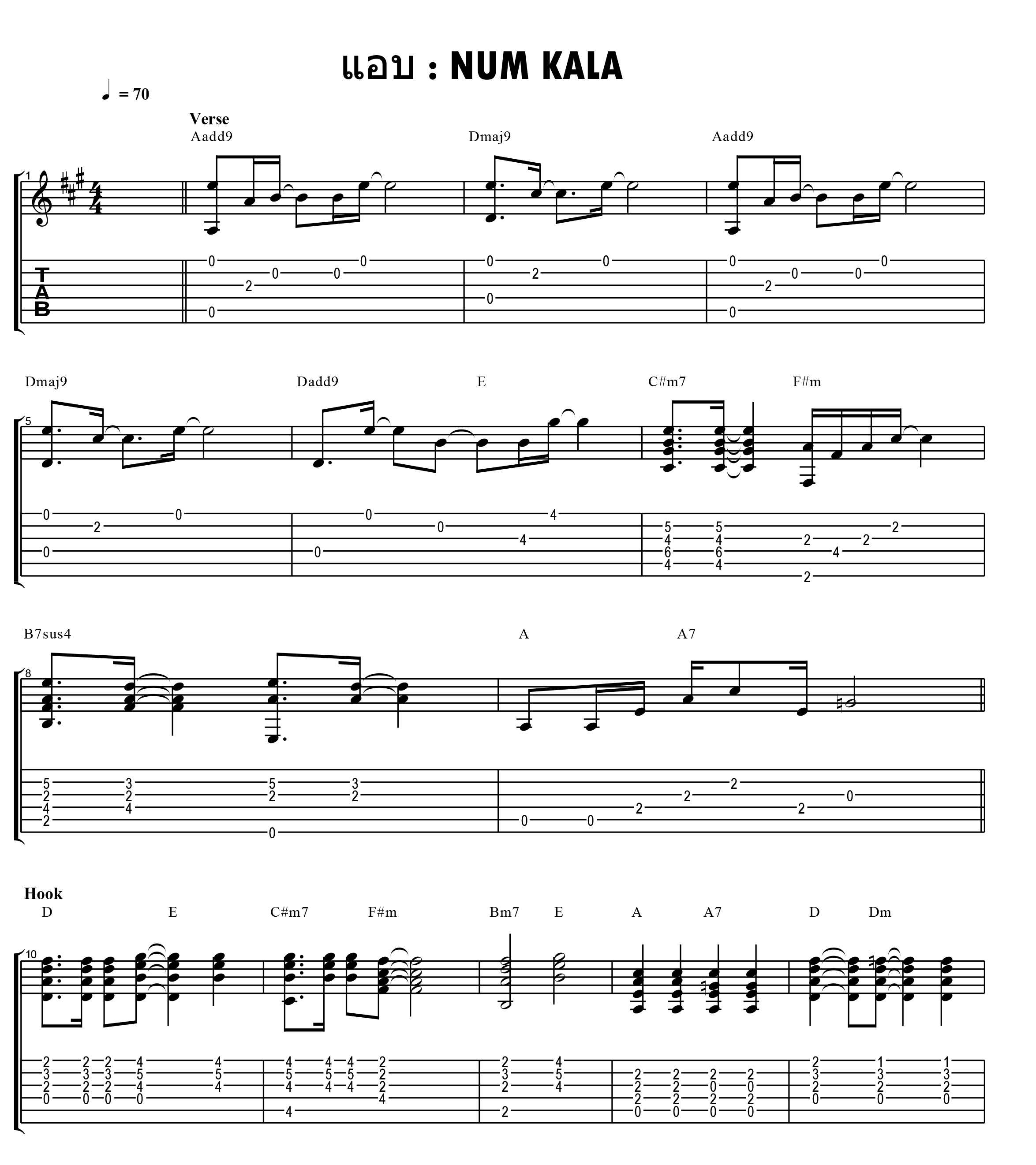 เพลงซึ้งๆ จากพี่หนุ่ม กะลา เพลงนี้อยู่ในคีย์ A Major ความเร็ว 70 กับพาร์ทกีตาร์ไฟฟ้า ที่เป็นคีย์ A ปกติ ความเร็วเพลงนี้อยู่ที่ 79 ท่อน Verse จะเป็นการเล่นด้วยกีตาร์ Picking ท่อน Hook จะเป็นการเล่นคอร์ดด้วย Rhythm หลายๆ แบบ และส่วนใหญ่จะเป็นคอร์ดที่จับ 4 สาย ท่อน Solo จะมีการเปลี่ยนคีย์ และส่วนใหญ่จะเป็นการเล่นเมโลดี้ ก่อนจะจบด้วย Lick กีตาร์เล็กน้อย