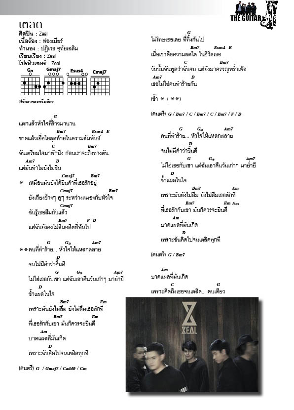 และแล้ว ความตื่นเต้นอันสุดยอดที่ทำให้กระเป๋าตังค์เราสั่นสะเทือนกันอีกครั้งในปีนี้ เมื่อได้ยินข่าวว่าวงZealจะมีคอนเสิร์ตเกิดขึ้น แน่นอนเลยว่าเป็นโชว์ที่ไม่เคยเกิดขึ้นมาก่อนกับวงๆนี้ ตั้งแต่กำเนิดขึ้นมากว่า15ปี ดังนั้นจะรออะไรละครับ แอดก็ รีบพุ่งตัวไปยังหน้าคอมกดบัตรกันเลยกันตั้งแต่วันแรกจนได้มาครอบครองแล้วในที่สุด ดังนั้นก่อนที่เราจะไปสนุกสนานและมันส์กันสุดแรงเกิดกับคอนเสิร์ตของพวกพี่เขานั้น เราก็มี10เพลงดีเพลงดังในรอบ15ปีมาให้ซักซ้อมและนึกถึงกันก่อน พร้อมกับคอร์ดกีตาร์และเนื้อเพลงตามนี้เลยครับผม แล้วพบกัน ณ Thunderdome วันเสาร์ที่23นี้ นะจ้า บายๆ