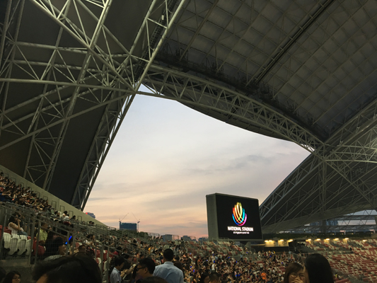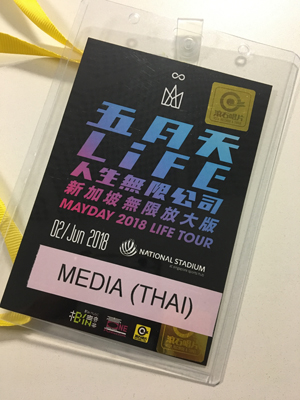 และวันงานก็มาถึง (2 มิถุนายน 2561) ทีมของ Live Nation สิงคโปร์ มารับพวกเราที่โรงแรมเพื่อไปกินอาหารเที่ยงที่ Jumbo Seafood ก่อนที่จะพาไปส่งถึงในสนาม Singapore National Stadium เพื่อเตรียมเข้าคอนเสิร์ต ก็รู้สึกตื่นเต้นนะ น่าจะเป็นเพราะได้ดูคอนเสิร์ตนอกประเทศไทยเป็นครั้งแรกละมั้ง (ฮา) ก่อนงานก็ออกมาเดินรอบๆ งาน เห็นผู้คนที่เข้ามาชมนั้นบอกเลยว่ามีทุกกลุ่ม ทั้งเด็กวัยรุ่น, วัยทำงาน ไปจนถึงพ่อแม่พาลูกหลานมาชม รวมๆ กว่า 40,000 คน (บัตร Sold Out) การแต่งตัวก็สบายๆ อาจจะด้วยอากาศวันนั้นร้อนอบอ้าวพอสมควร และการเข้าสู่สนามของที่นี่ก็ทันสมัยสุดๆ ด้วยเครื่องสแกนบัตร ปี๊ดเดียวผ่าน! (ฮา) ไม่มีการแออัดหน้างาน ด้านในก็มีอาหารฟาสฟู้ดจำพวกฮอทดอก พิซซ่า และเครื่องดื่ม แยกย้ายกันไปหาของกิน สักพักก็เข้าสู่ที่นั่งเพื่อรอชม Mayday 2018 Life Tour in Singapore