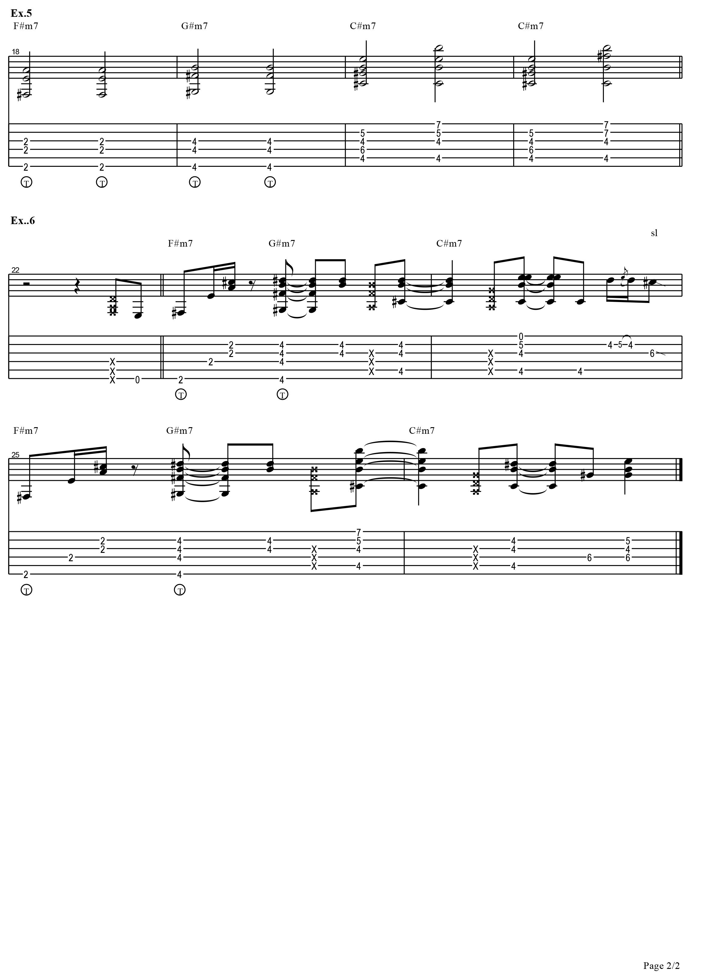 ทีนี้ก็มาถึงบทเรียนในตอนนี้ครับ จากที่เราจับบาร์คอร์ด เราลองเอานิ้วโป้งที่เราใช้เป็นหลัก อ้อมมาจับโน้ตเบสบนสาย 6 ตัวเดียวพอ ลองดูที่คอร์ด F#m กับ G#m โน้ต F# กับ G# ที่สาย 6 จะถูกกดโดยนิ้วโป้ง และเราสามารถเล่นโน้ตที่เหลือได้โดยไม่ต้องทาบความรู้สึกจะเหมือนเรากำคอกีตาร์นั่นเอง ลองฝึกเล่นแบบนี้ให้ชินจะเล่นคอร์ดต่างๆ ได้ง่ายและกว้างขึ้น