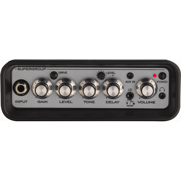 แอมป์จิ๋วของ Laney ตัวนี้ที่เราลองเป็นรุ่น Supergroup จะประกอบไปด้วย 1 Input มีปุ่ม Gain กับ Tone ด้านบนมีปุ่มเล็กๆ กดเลือกเสียงแตก จากนั้นจะเป็น Delay และปุ่ม Level ของ Delay มี AUX IN แล้วก็ช่องเสียบ LSI ปุ่ม Volume รวมๆ และช่องเสียบหูฟัง ปุ่มเปิด ปิด ใส่ถ่านได้ใช้ AA 6 ก้อน เป็นแอมป์แบบ 3 Watts ( ถ้าเป็น ST จะเป็นดอกลำโพง 3 Watts 2 ดอก)