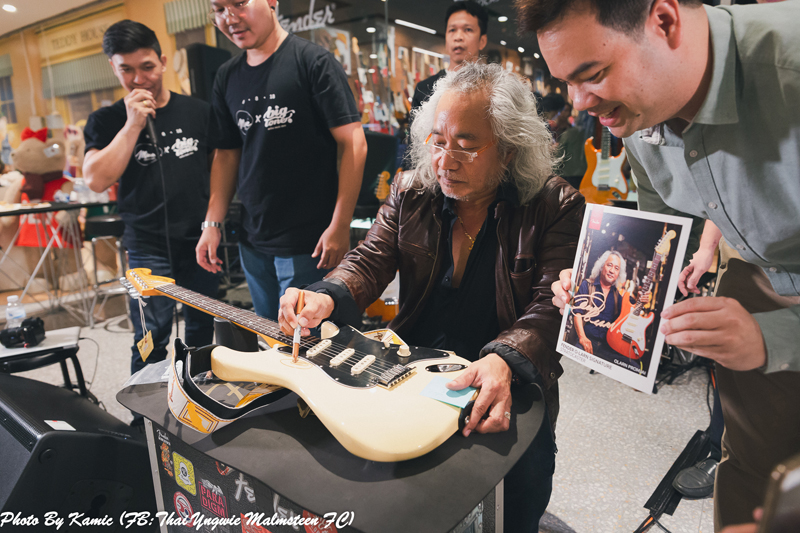 ภายในงาน ก็มีผู้ร่วมงานมากมาย ทั้งลูกสาวของพี่โอ้ ที่มาเซอร์ไพรส์ในงาน นักดนตรีรุ่นใหญ่อย่าง ป๊อป เดอะซัน, หมู คาไลโดสโคป, กิตติ กีตาร์ปืน, อ้อง สุรสีห์ อิทธิกุล รุ่นกลางและรุ่นใหม่อย่าง ชุ และศิลา Zeal, โอ่ง Ghost รัฐ และจั๊มพ์ Tattoo Color กัน และพัด Mean รวมถึงแฟนๆ ของ The Olarn ที่มาอย่างอุ่นหนาฝาคั่ง หลังจากแนะนำกีตาร์แล้ว พี่โอ้ก็โชว์ 3 เพลง Going Home, อย่าหยุดยั้ง, เหนือคำบรรยาย และจบด้วยการถ่ายรูปแจกลายเซ็นต์แก่ผู้มาร่วมงาน หากใครสนใจ Fender “O-Larn Signature” Stratocaster ก็สามารถไปลองหรือจับจองกันได้ที่ Music Concept ณ Central World ซึ่งสนนราคาอยู่ที่ 53,000 ลดแล้วอยู่ที่ 47,700 ไปทดลองกันได้เลย