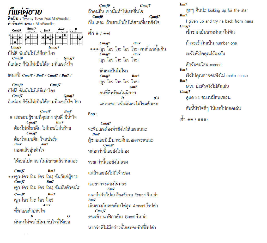 <img class="aligncenter size-full wp-image-42101" src="https://www.theguitarmag.com/wp-content/uploads/2021/03/64.ก็แค่ผู้ชาย-Twenty-Town-Feat.MildVocalist.png" alt="" width="1024" height="933" />