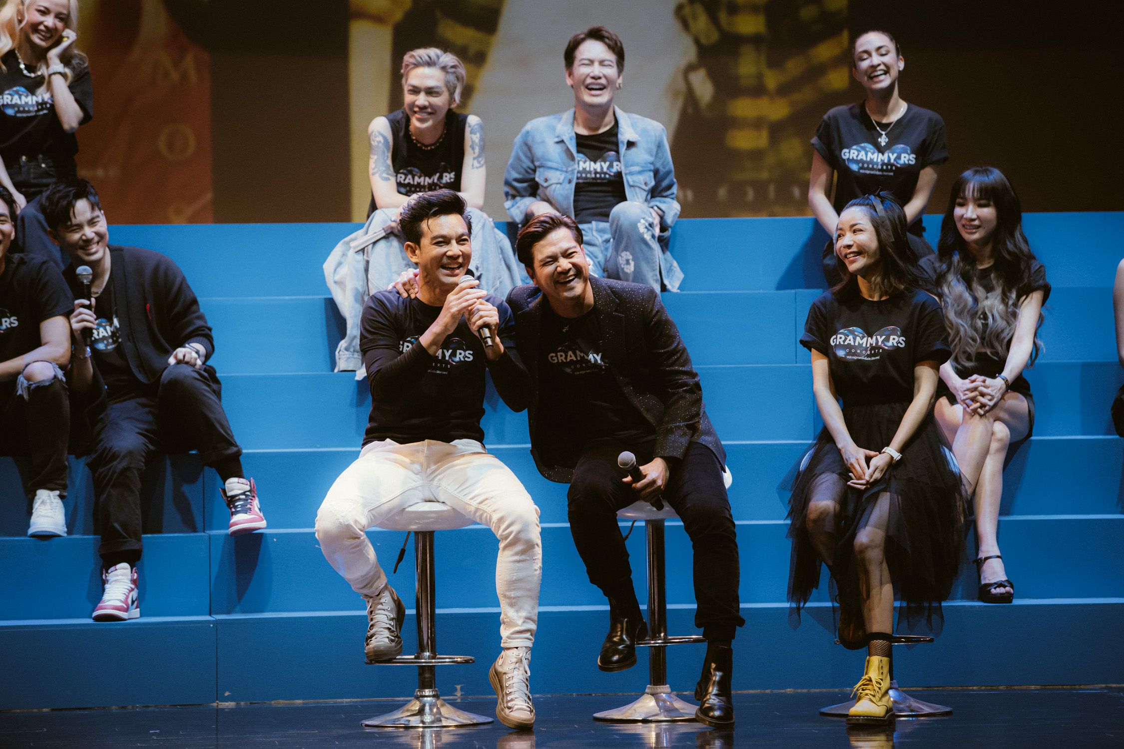 บรรยากาศตั้งแต่ช่วงเช้าเป็นไปอย่างคึกคัก โดยพี่ๆ สื่อมวลชนให้ความสนใจเดินทางมาร่วมเก็บภาพบรรยากาศและรายงานข่าวเป็นจำนวนมาก เริ่มต้นวินาทีประวัติศาสตร์นำโดย 2 แม่ทัพใหญ่ คุณเจ๋อ ภาวิต จิตรกร ประธานเจ้าหน้าที่บริหาร สายธุรกิจ จีเอ็มเอ็ม มิวสิค บริษัท จีเอ็มเอ็ม แกรมมี่ จำกัด (มหาชน) และ คุณตั้ม วิทวัส เวชชบุษกร ประธานเจ้าหน้าที่สายงานการเงิน บริษัท อาร์เอส จำกัด (มหาชน) ในฐานะกรรมการกิจการร่วมค้า อะครอส เดอะ ยูนิเวิร์ส เล่าถึงจุดเริ่มต้นของโปรเจกต์ และปรากฎการณ์ความร่วมมือครั้งประวัติศาสตร์ในครั้งนี้ ถือเป็นงานวาระแห่งชาติร่วมมืออันยิ่งใหญ่ ทีมงานผู้จัดเตรียมงานนี้ก็ต้องไม่ธรรมดาแน่นอน เพราะได้ทีมผู้จัดจาก GMM SHOW ซึ่งเป็นครีเอทีฟผู้สร้างสรรค์โปรเจกต์ GRAMMY RS CONCERTS นำโดย ป๋าเต็ด ยุทธนา บุญอ้อม รองกรรมการผู้อำนวยการอาวุโส-หน่วยงาน Showbiz GMM SHOW พร้อมด้วย คุณศักดิ์สกุล แก้วมาตย์ ผู้อำนวยการฝ่ายอาวุโส-ผลิตและสร้างสรรค์งาน SHOWBIZ BRAND CREATIVE – IDEAFACT และคุณป่านแก้ว สัตยาวุฒิพงศ์ ผู้อำนวยการฝ่าย-ผลิตและสร้างสรรค์งาน SHOWBIZ BRAND CREATIVE – GAYRAY ภายใต้หน่วยงาน GMM SHOW ขึ้นมาเล่าถึงโปรเจกต์ที่ทุกคนรอคอย “GRAMMY RS CONCERTS” ความสนุกที่จะเกิดขึ้นรวมทุกความทรงจำที่คิดถึง ทุกเพลงฮิตซาบซึ้งน้ำตาไหล ใส่ครบทุกแนวเพลง ฮิปฮอป ป๊อป ร็อค ลูกทุ่ง ทุกท่าเต้นที่เคยคัฟเวอร์รุ่นบุกเบิก จัดเต็มทุกแฟชั่น เสื้อผ้า หน้าผม ประกบกันตัวต่อตัว เพลงต่อเพลง เมดเล่ย์ต่อเมดเล่ย์ พร้อมเซอร์ไพรส์การรวมตัวข้ามค่าย ข้ามวง ข้ามทุกขีดจำกัด และซีนไฮไลท์ ที่จะทุกคนจะสนุกและประทับใจ ให้สมการรอคอยมากว่า 40 ปี ที่กำลังจะเกิดขึ้นทั้ง 3 คอนเสิร์ตใหญ่ ในวันที่ 29-30 กรกฎาคม / 9-10 กันยายน และ 28-29 ตุลาคม ณ อิมแพ็ค อารีน่า เมืองทองธานี กระซิบว่านับจากนี้ เริ่มซ้อมร้อง ซ้อมเต้น ฟัง Playlist วนๆ กันได้เลย