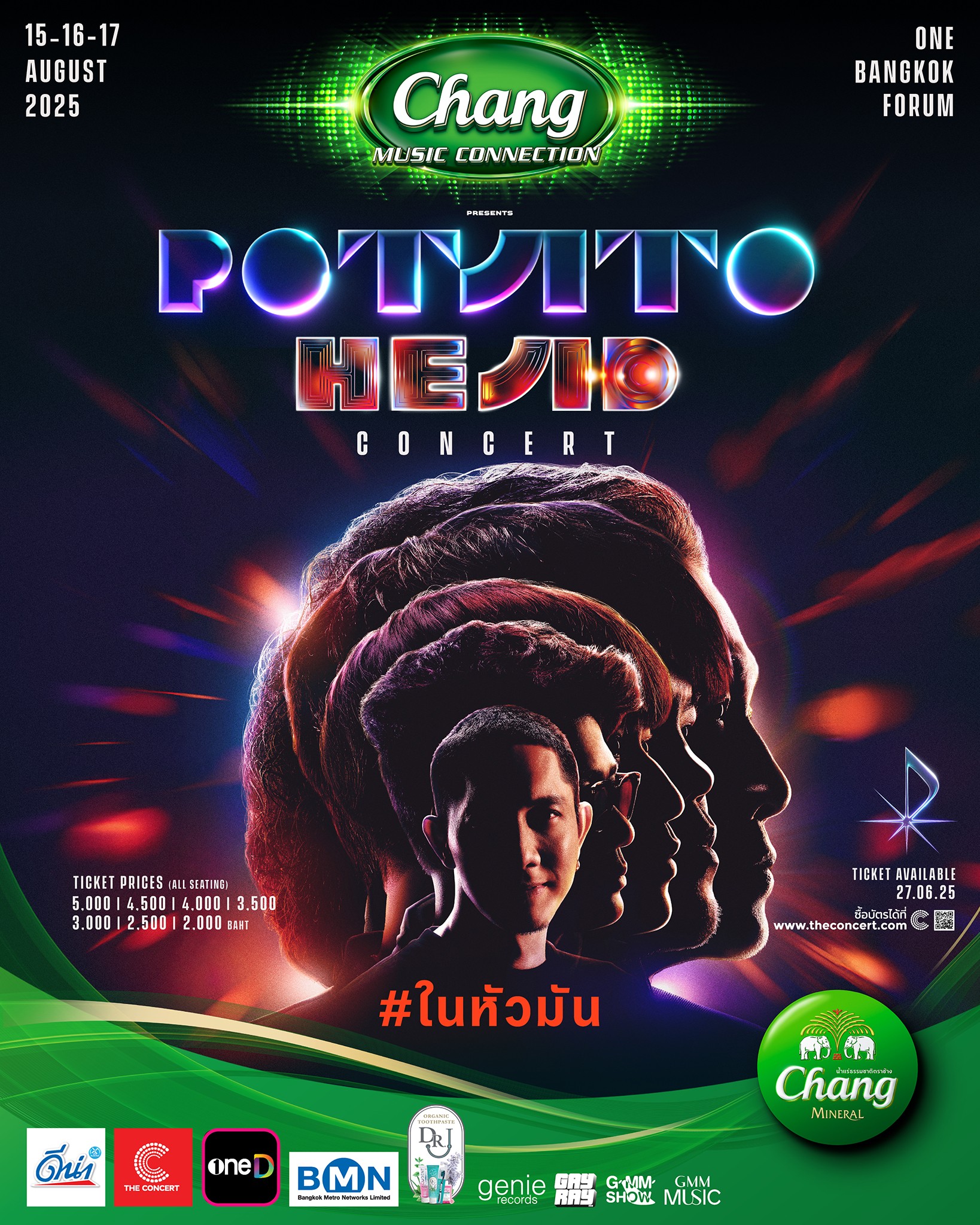 POTATO วงร็อคที่ขวัญใจแฟนเพลงชาวไทย เตรียมระเบิดความมันครั้งใหม่กับคอนเสิร์ตเต็มรูปแบบในรอบ 6 ปี Chang Music Connection presents POTATO HEAD CONCERT #ในหัวมัน คอนเสิร์ตที่ไม่ใช่แค่โชว์ดนตรี แต่คือประสบการณ์ทางอารมณ์และจินตนาการแบบจัดเต็ม! คอนเสิร์ตครั้งสำคัญที่จะเปลี่ยนทุกความ ธรรมดาให้กลายเป็นความสนุก พร้อมชวนทุกคนดำดิ่งสู่โลกแห่งจินตนาการในสไตล์ของวง POTATO จัดโดย GAYRAY ทีมงานคุณภาพจาก GMM SHOW ผู้จัดงานคอนเสิร์ตและเฟสติวัลที่ดีที่สุดของประเทศ เตรียมตัวให้พร้อมกับ 3 รอบการแสดง ในวันที่ 15,16 และ 17 สิงหาคม 2568 ณ One Bangkok Forum