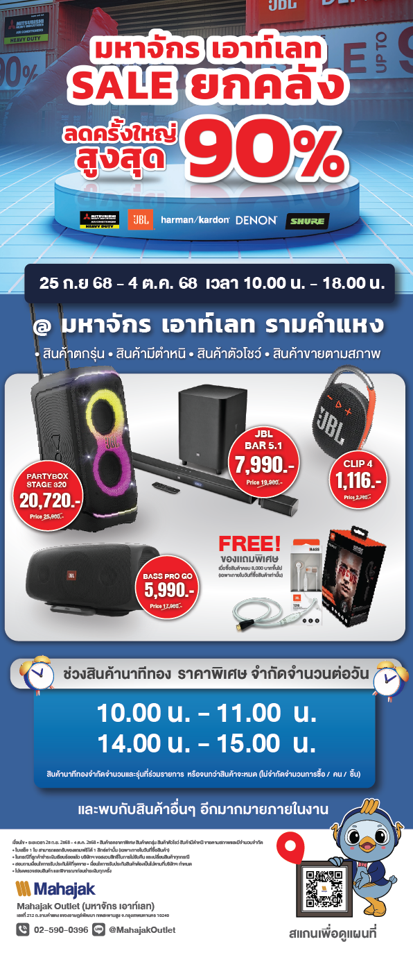 บริษัท มหาจักรดีเวลอปเมนท์ จำกัด จัดมหกรรมลดราคาครั้งใหญ่ที่สุดในรอบปี Mahajak Outlet Sale ยกคลัง 2025 ลดสูงสุดถึง 90% ที่ มหาจักร เอาท์เลท รามคำแหง