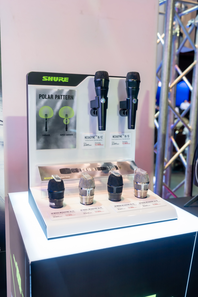 – Shure นำโซลูชันไมโครโฟนและระบบไร้สายระดับทัวร์ริ่ง ครอบคลุมทั้ง Axient Digital Wireless Mic ระบบไมค์ไร้สายประสิทธิภาพสูงสำหรับงานมืออาชีพ, Axient Digital PSM (ADPSM) ระบบ In-Ear Monitor ที่ให้ความเสถียรและความคมชัดของเสียงมอนิเตอร์, Nexadyne™ Series ไมโครโฟนไดนามิกสำหรับร้องเพลงและเครื่องดนตรีที่ให้รายละเอียดเสียงเป็นธรรมชาติ และ SLX-D Quad Channel ระบบไร้สายดิจิทัลแบบ 4 แชนแนล รองรับงานโปรดักชันและอีเวนต์ในระดับมืออาชีพ