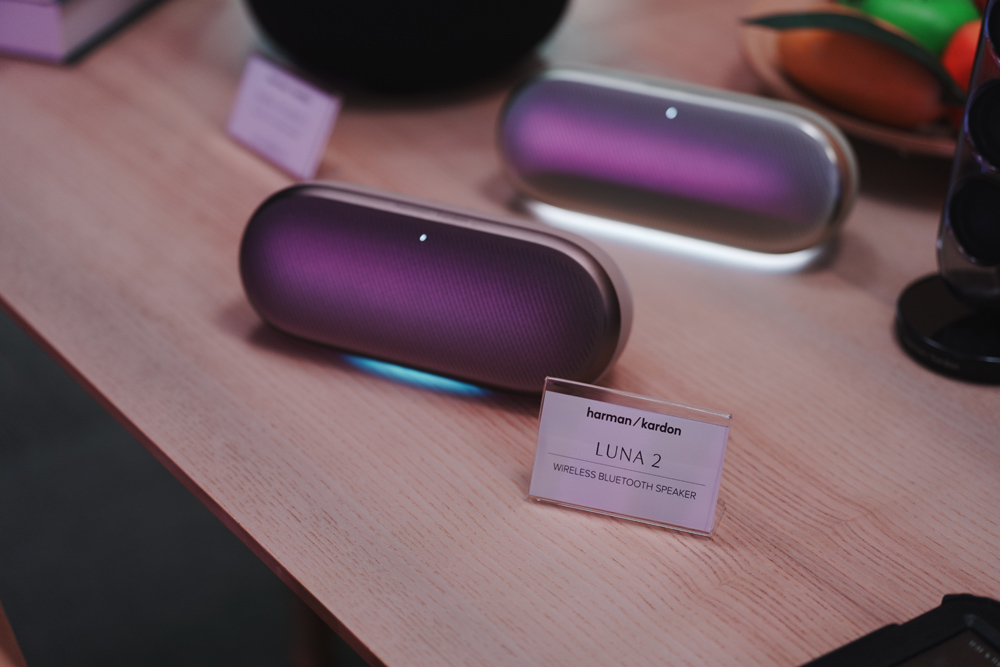 ต่อมาคือลำโพงบลูทูธแบบพกพา Harman Kardon Luna 2 ที่ถูกออกแบบมาให้เป็นซาวด์แทร็กประจำวัน เคลื่อนไหวไปพร้อมทุกช่วงเวลาของชีวิต ด้วยโครงสร้างอะลูมิเนียมแข็งแรงและดีไซน์ตามหลักสรีรศาสตร์ที่จับถนัดมือ มอบพลังเสียงคมชัดสมดุลด้วยเทคโนโลยี AI Sound Boost ที่ช่วยวิเคราะห์และปรับเสียงแบบเรียลไทม์ เสริมบรรยากาศด้วยไฟ Ambient Light โทนอุ่นที่มีให้เลือกถึง 6 รูปแบบ พร้อมระบบ AirTouch™ ที่สามารถจับคู่ลำโพงสองตัวให้เป็นเสียงสเตอริโออัตโนมัติ มาพร้อมแบตเตอรี่ใช้งานได้นานสูงสุด 12 ชั่วโมง และมาตรฐานกันน้ำกันฝุ่นระดับ IP67 โดยมีให้เลือก 3 สี ได้แก่ Classic Black, Warm Sand และ Ice Mint