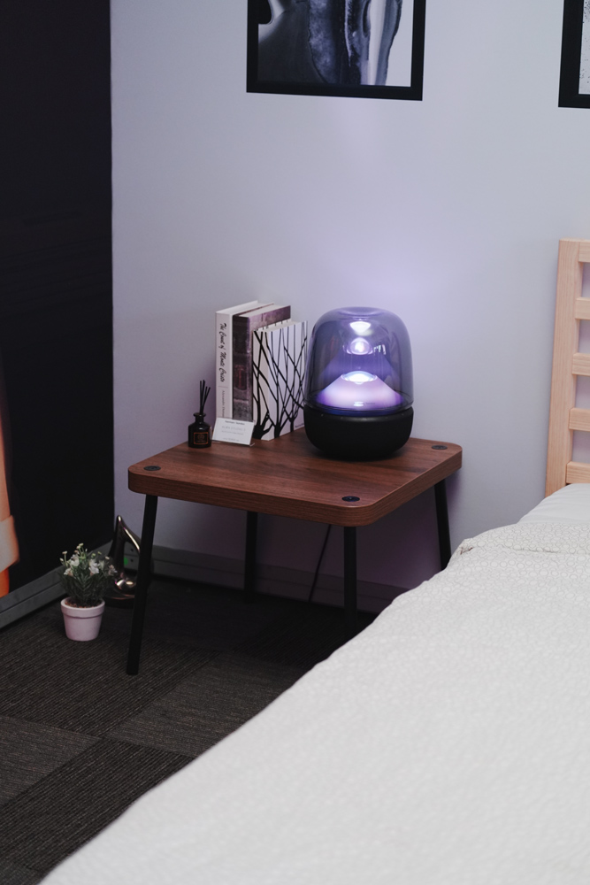 และ เจเจ-กฤษณภูมิ พิบูลสงคราม เล่าว่า “จริงๆ เราฟังเพลงค่อนข้างเยอะ แต่ถ้าแนวที่ชอบที่สุดจะเป็น Hip-hop กับ R&B ซึ่งศิลปินคนโปรดคือ Tyler, The Creator เราชอบทั้งสไตล์การแร็ป รวมถึงความสามารถด้านการโปรดิวซ์และการทำดนตรีของเขา แล้วพอเราเป็นคนที่อินกับรายละเอียดของดนตรี เวลาฟังเพลงก็เลยให้ความสำคัญกับอุปกรณ์ค่อนข้างมาก หลายคนอาจมองว่าลำโพงแบบไหนก็ฟังได้เหมือนกัน แต่ถ้าฟังลึกลงไปอีกระดับ เราจะสัมผัสรายละเอียดของเสียงและสิ่งที่ศิลปินตั้งใจถ่ายทอดได้มากขึ้น เพราะถ้าลำโพงคุณภาพไม่ดี บางครั้งเสียงย่านต่ำหรือย่านสูงอาจหายไป ทำให้ประสบการณ์การฟังไม่ครบถ้วน ดังนั้นเวลาเลือกลำโพง นอกเหนือจากคาแรคเตอร์ของแบรนด์ที่เหมาะกับเราแล้ว ก็จะเลือกจากคุณภาพของเสียงว่าบาลานซ์และดึงรายละเอียดแต่ละย่านออกมาได้ดีแค่ไหน รวมถึงดีไซน์ด้วย เพราะถ้าลำโพงสามารถเข้ากับการแต่งบ้านได้ ก็ยิ่งตอบโจทย์การใช้ชีวิตมากขึ้น”