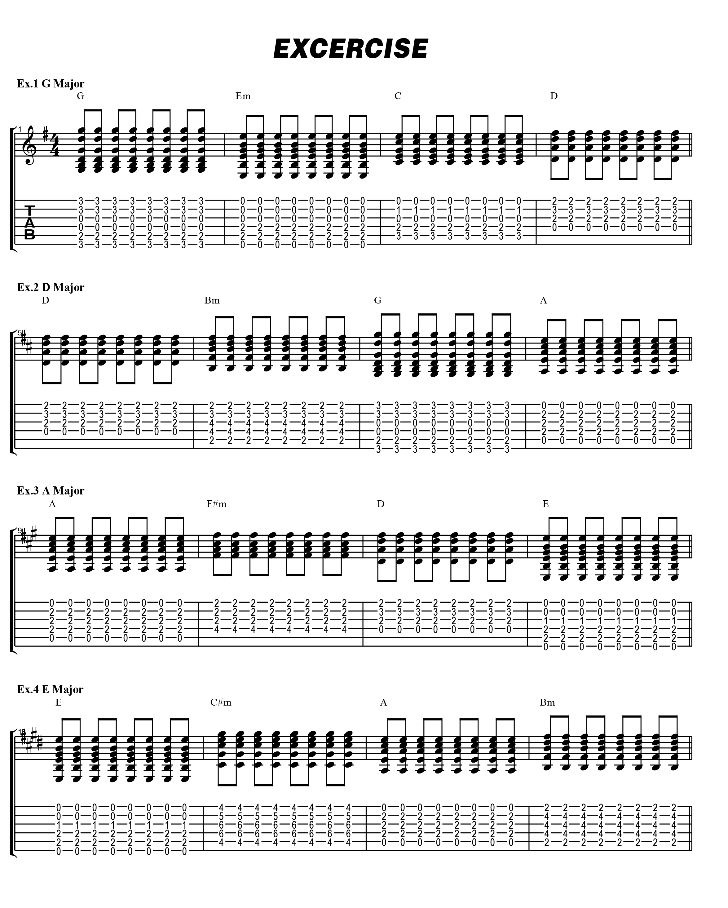 Ex.3 เป็นคอร์ด A F#m D E อยู่ในคีย์ A Major