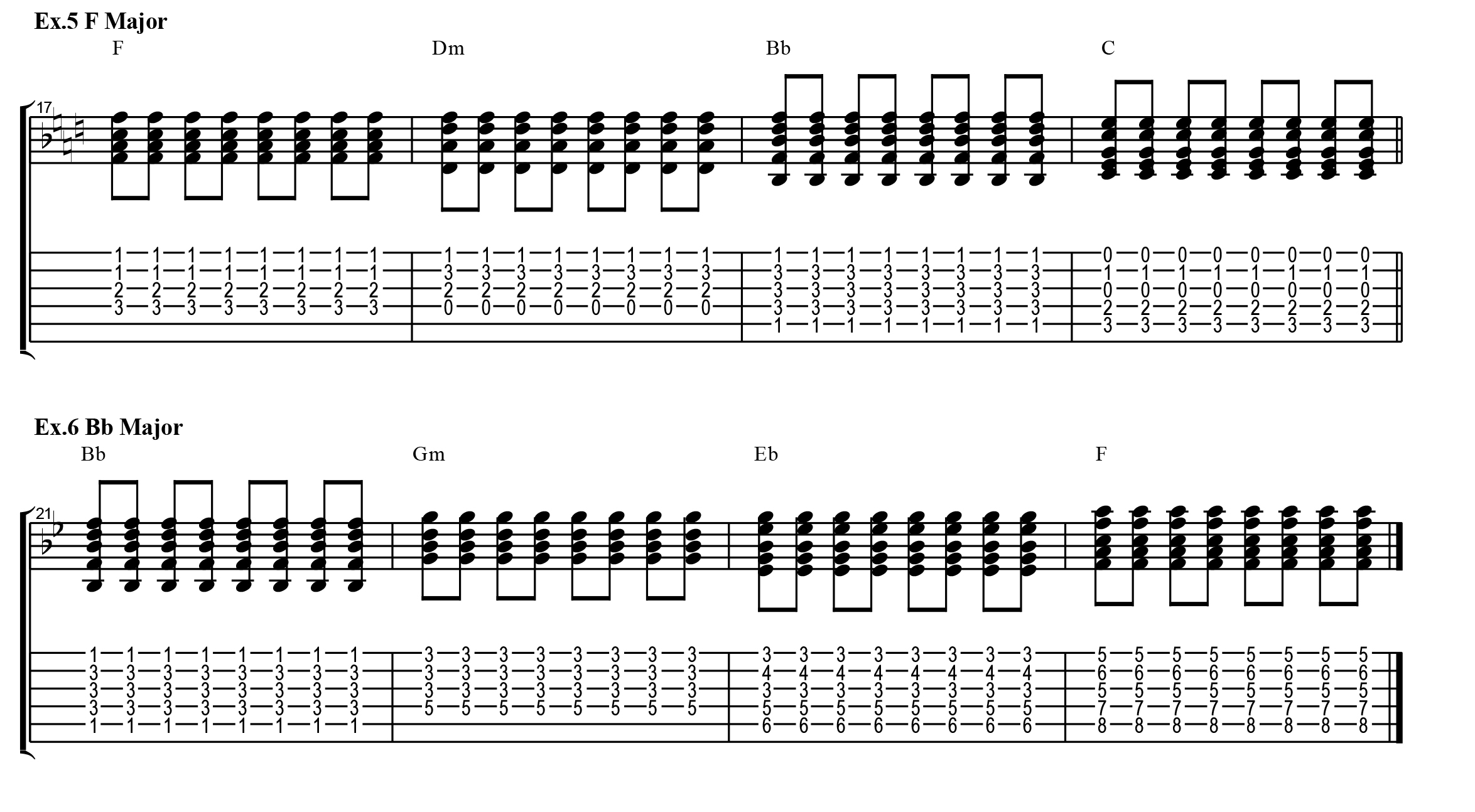 Ex.6 เป็นคอร์ด Bb Gm Eb F อยู่ในคีย์ Bb Major